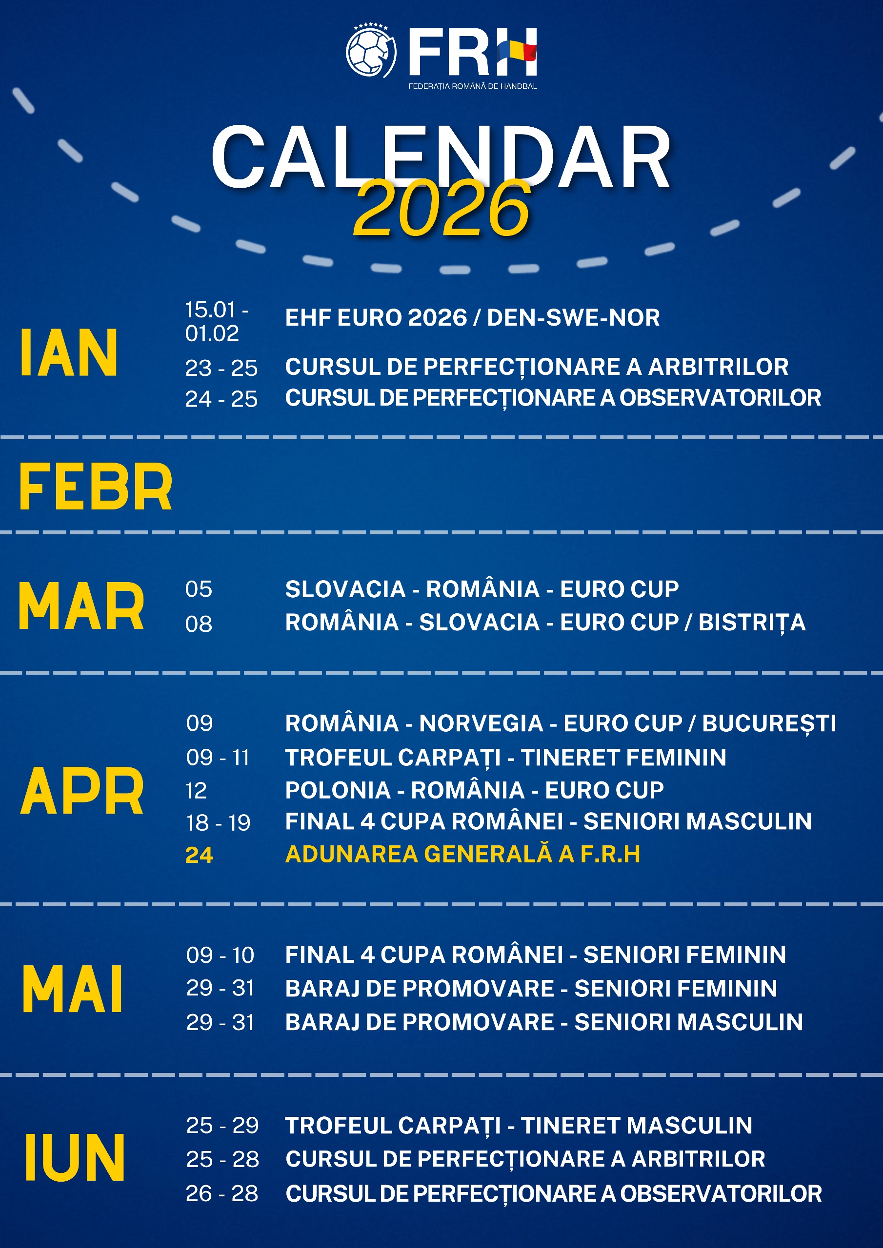 COMUNICAT OFICIAL - Federația Română de Handbal, Lu, 19 ianuarie 2026