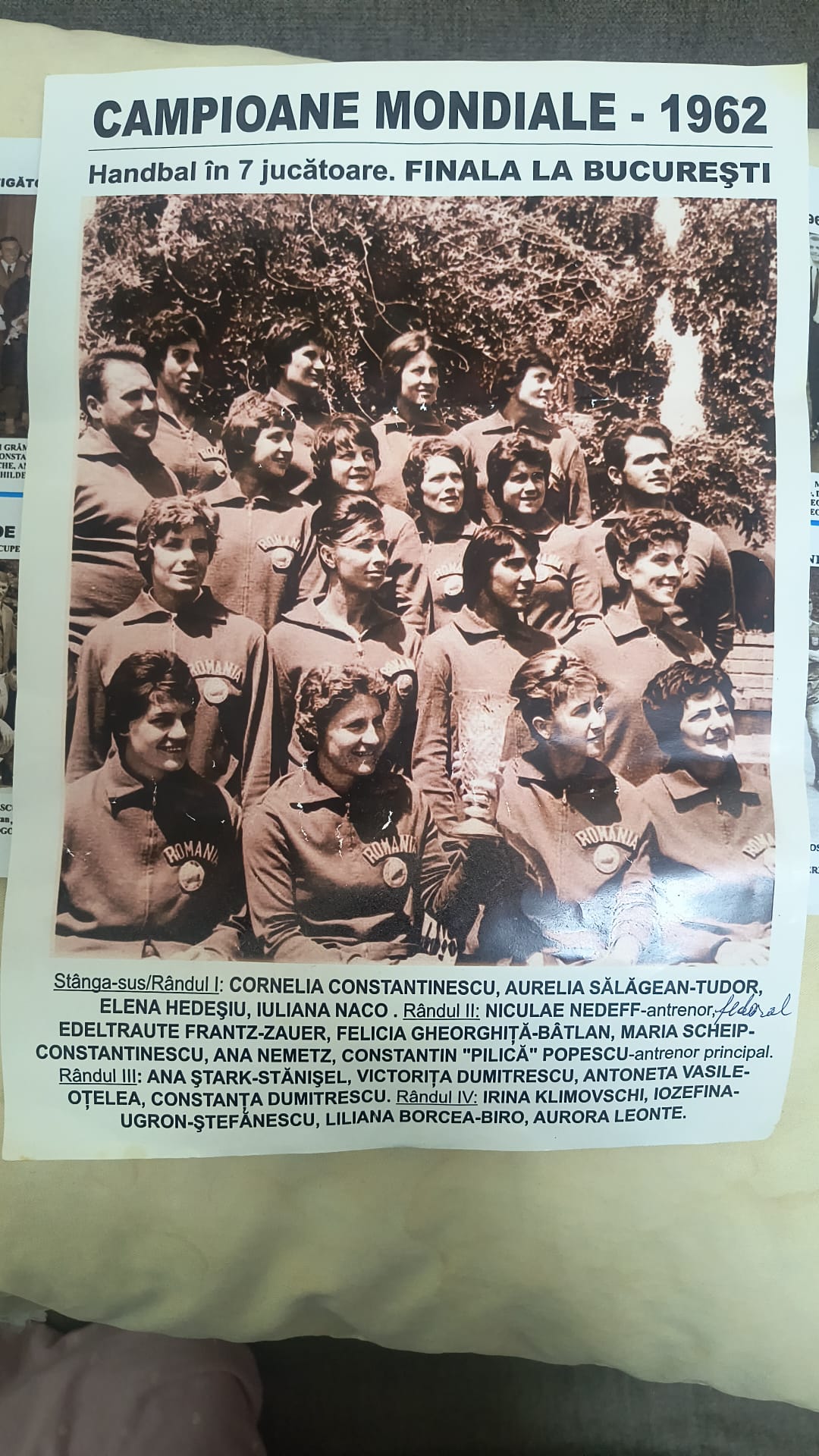 Dumitrescu Constanța, campioană mondială cu echipa națională a României în 1962, s-a stins din viață.